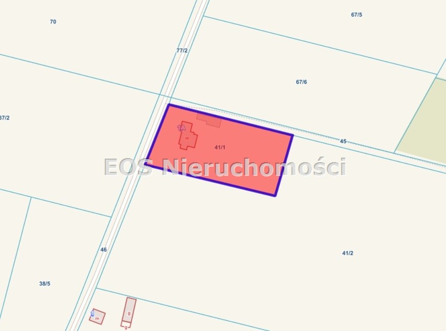 Nieruchomość gruntowa o powierzchni 0,4998 ha. Zabudowana budynkiem mieszkalnym konstrukcji murowanej o powierzchni użytkowej 186.48 m2 oraz 55,23 m2 powierzchni pomocniczej w przyziemnym budynku tj. garaż i kotłownia. Na działce znajduje się również budynek gospodarczy, konstrukcji drewnianej o powierzchni użytkowej 53.06 m2. Nieruchomość pełni funkcję mieszkalną.