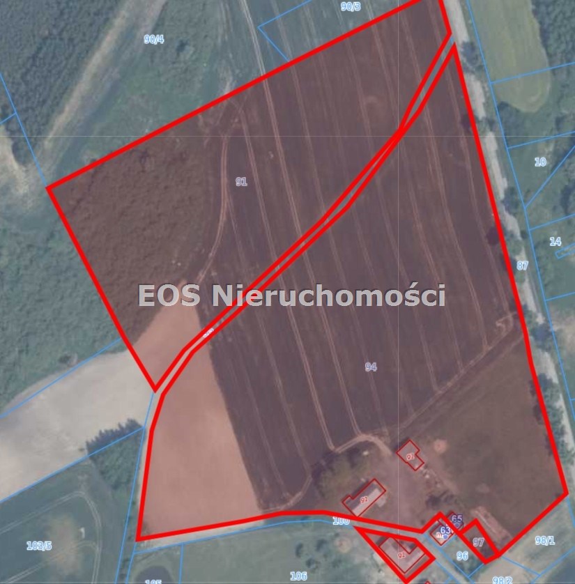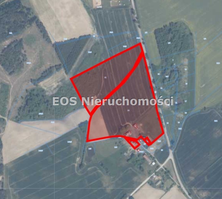 Łączna powierzchnia 4 działek gruntu (obszar nieruchomości) to 6.75 ha, a łączna powierzchnia zabudowy budynków na 2 działkach wynosi 797 m2.